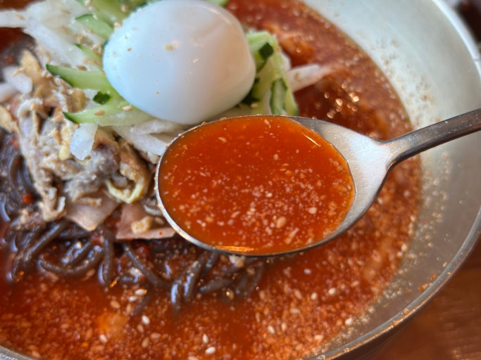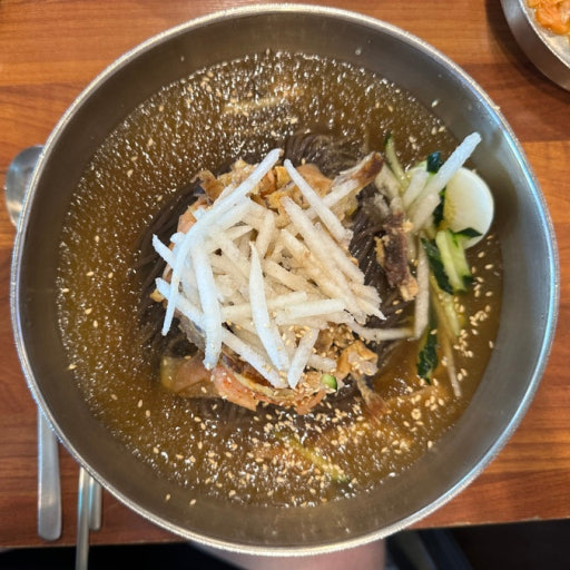 얼음이 살짝 녹아있는 시원한 육수, 탱글탱글한 면발, 고소한 고명이 어우러져 첫 입부터 마지막 숟가락까지 만족도 최고였습니다.